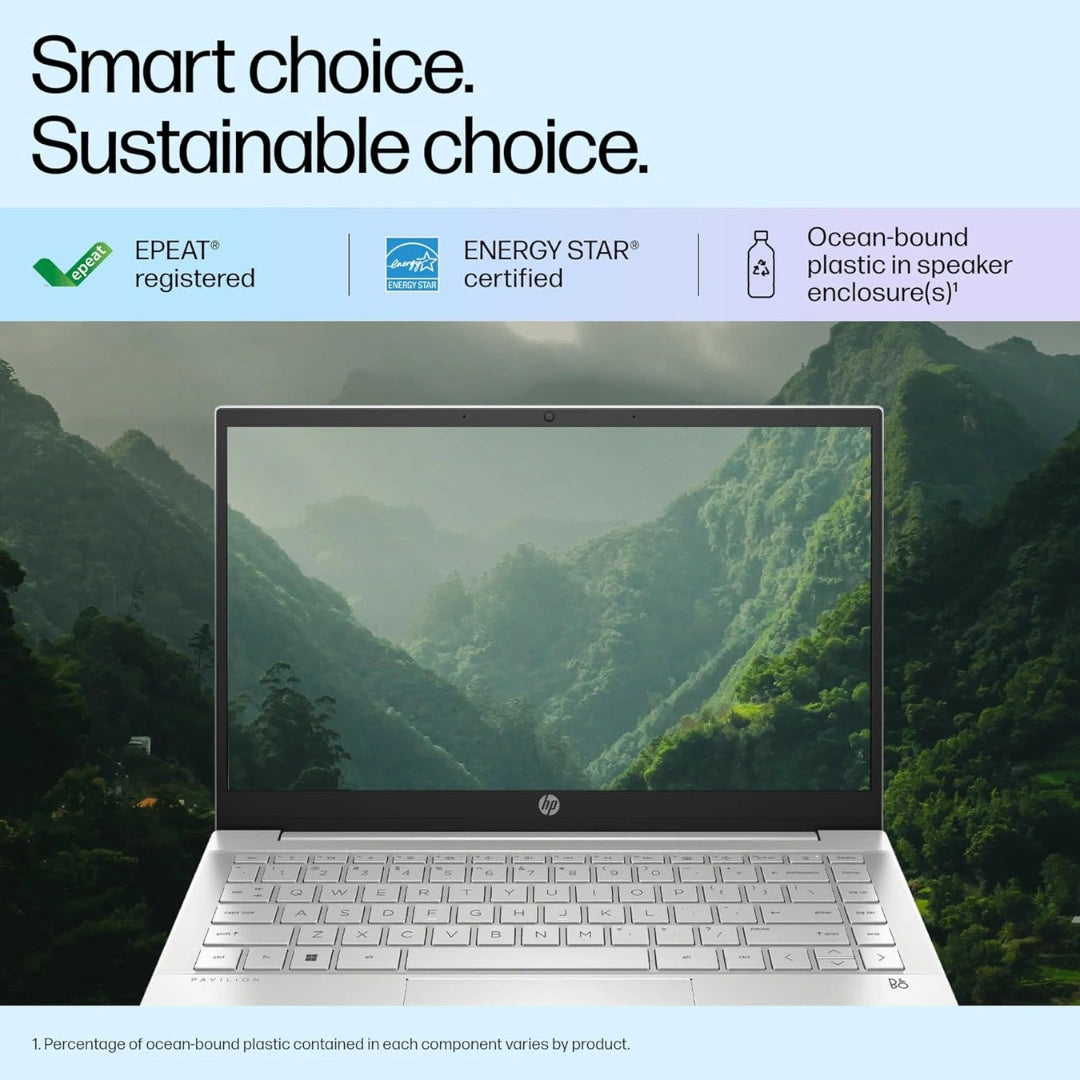 HP Pavilion, 12th Gen Intel Core i5-1235U, 8GB DDR4, 512GB SSD, Micro-Edge, BrightView, IPS, 14-inch(35.6cm) FHD Laptop, HD Camera, Backlit KB, B&O (Win 11, Office 21, Silver, 1.41kg) dv2053TU