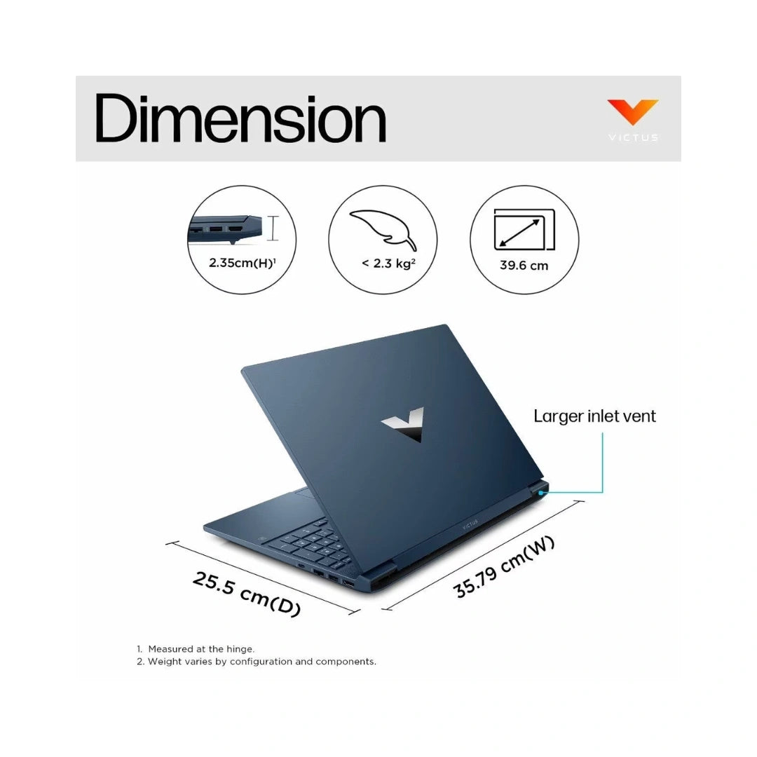HP Victus Gaming 15 15-FA2196TX | IPS, micro-edge, anti-glare| Brightness: 300 nits | 141 PPI | Color Gamut: 62.5% sRGB | HP Wide Vision 720p HD camera