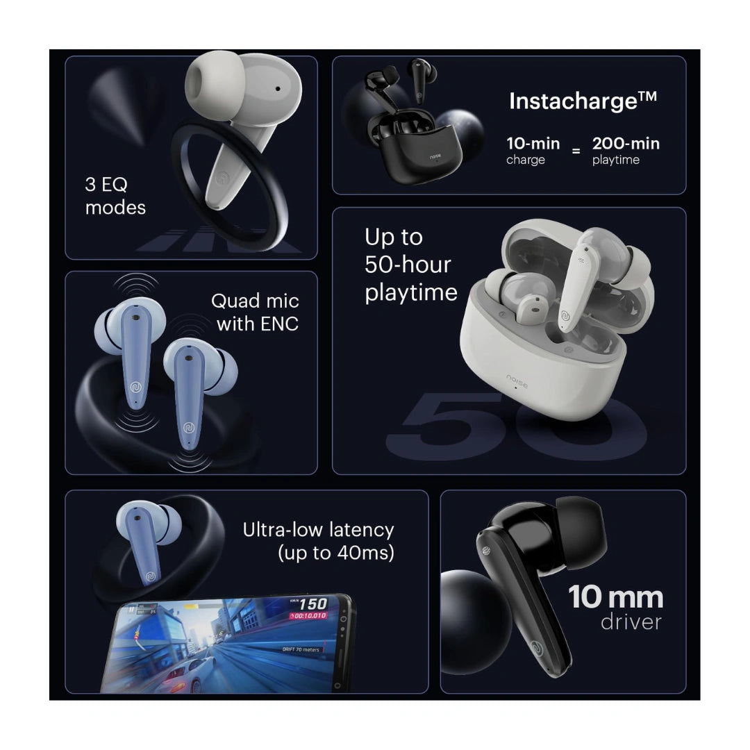 Noise Buds VS106 Truly Wireless in Ear Earbuds with 50H Playtime, Quad Mic with ENC, Instacharge(10 Min=200 Min),Ultra-Low Latency(Up to 40Ms), 10Mm Driver, and BT V5.3