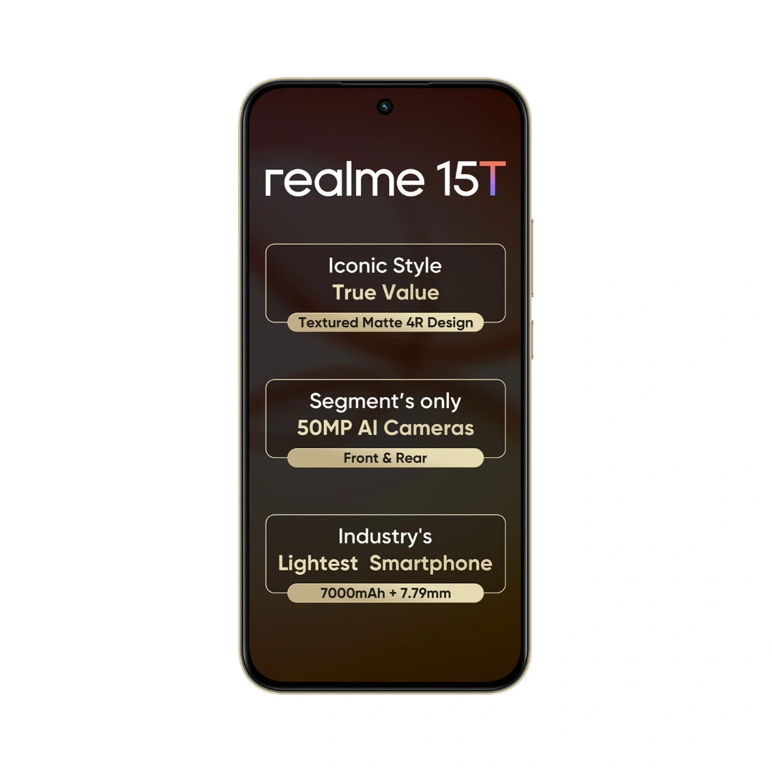 Realme 15 T | 6.8 Inches Display | Dimensity 6400 Max 5G Chipset | 50MP Rear Camera | 50 MP Front Camera | 7000 mAH Battery