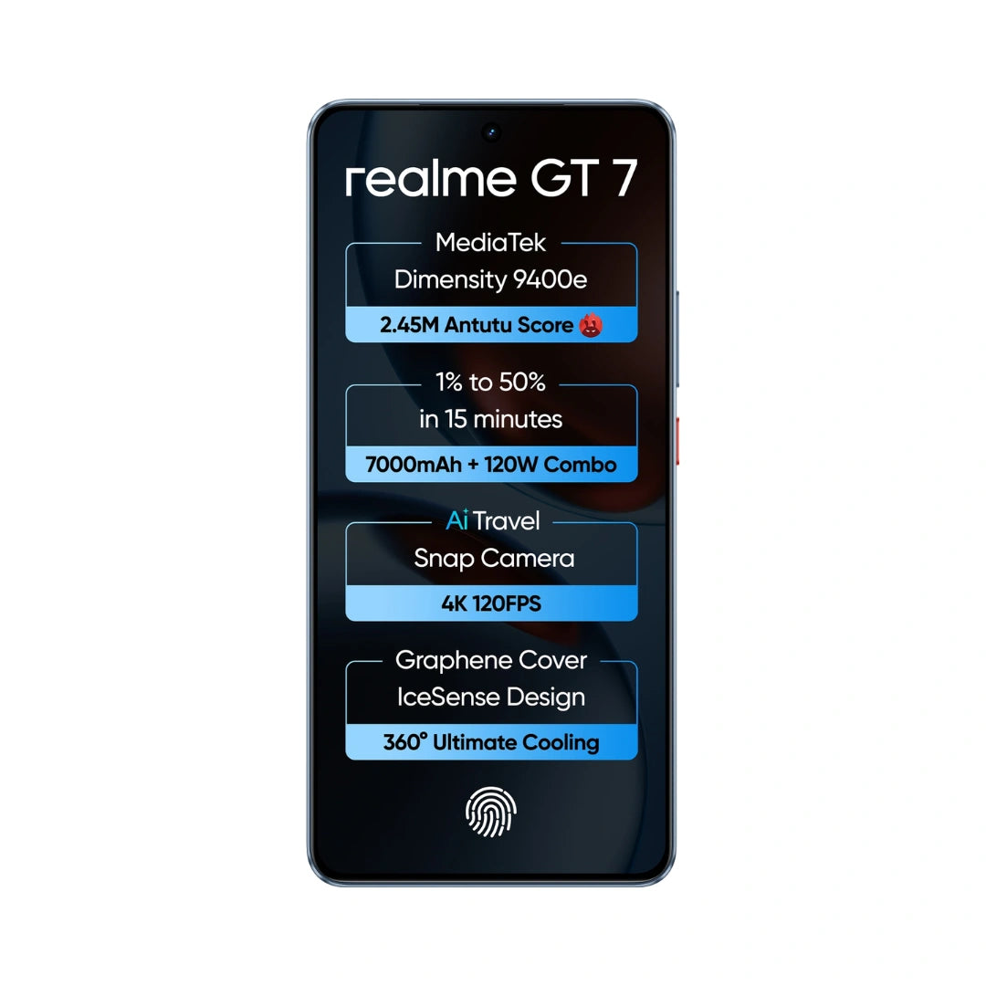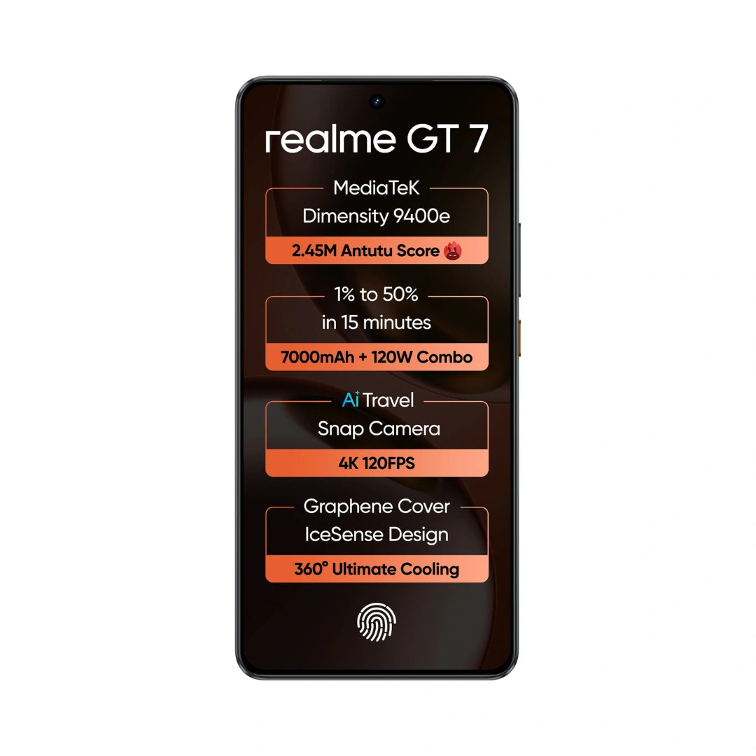 realme GT 7| India's 1st MediaTek Dimensity 9400e Chipset | Strongest Battery Combo 7000mAh + 120W | AI 4K 120FPS Travel Camera