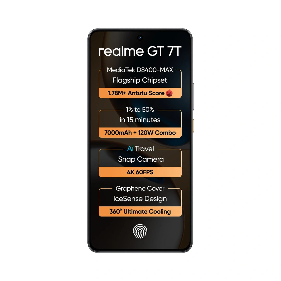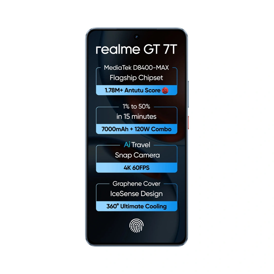 realme GT 7T | MediaTek D8400 MAX | Strongest Battery Combo 7000mAh + 120W | AI 4K 60FPS Travel Camera | 6000 nits Display