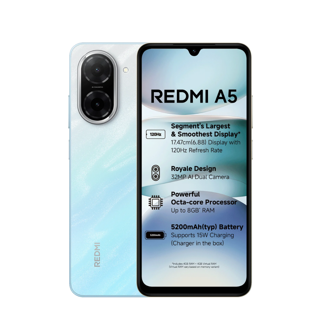 Redmi A5 4G| 6.88 inches Display | 32MP Single camera | 8MP Front camera | Android 15 | 5200 Mah Battery