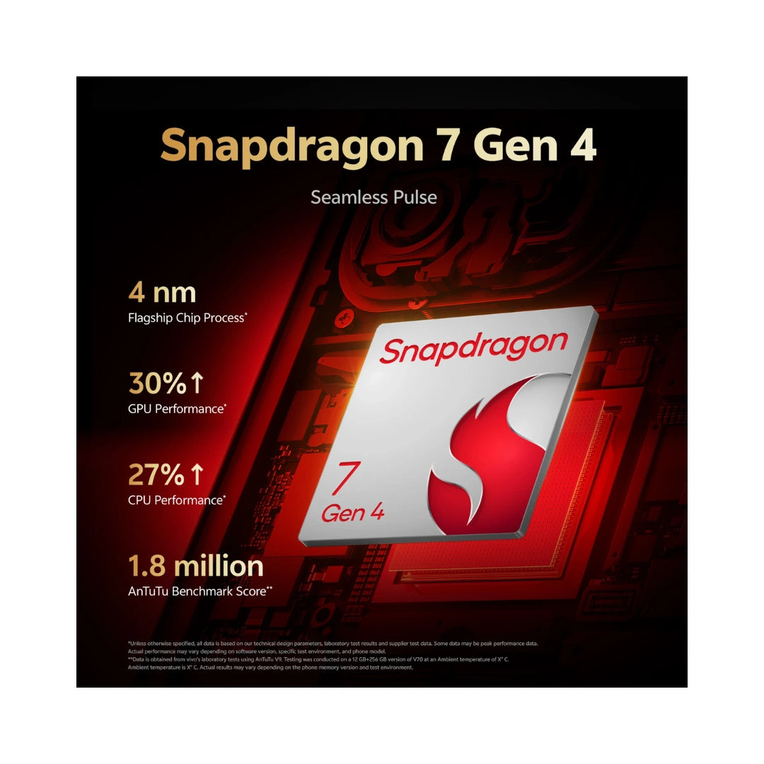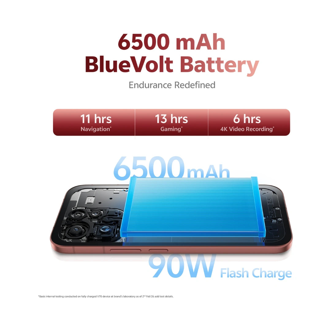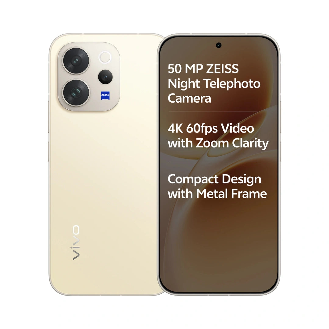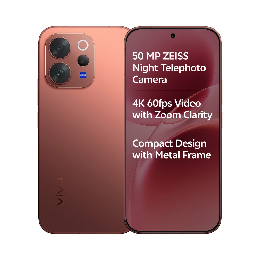 Vivo V70 is a Premium 5G Smartphone Featuring a 6.59-inch 1.5K 120Hz AMOLED Display with 5000nits Peak Brightness, a Snapdragon 7 Gen 4 Processor, and a 6500mAh Blue Volt Battery with 90W Fast Charging. It Boasts a 50MP ZEISS Triple-Rear Camera System, 50MP Selfie Camera.